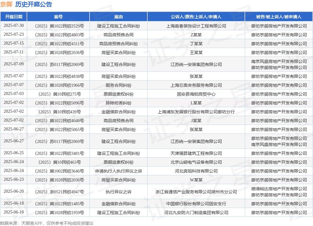 本站消息,根据天眼查APP显示,近日公布了一则廊坊京御房地产开发有限公司作为被告/被上诉人的开庭公告华瑞优配,详细内容如下: